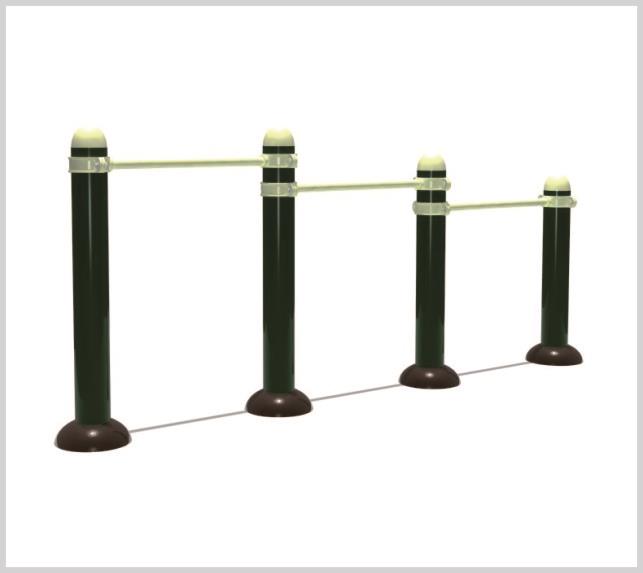 产品采用大规格材料,主体主柱规格为¢114,管壁厚度为3.0mm。钢质部件采用镀锌钢管,经特殊高温静电粉末喷塑处理,烤漆粉末为进口室外专用材料。塑料部件采用进口有色工程塑料为原材料。