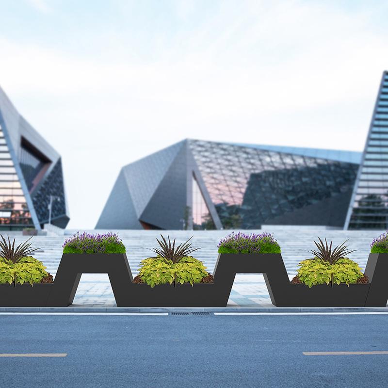 定制木花箱、玻璃钢花箱、不锈钢花箱、仿藤花箱等。